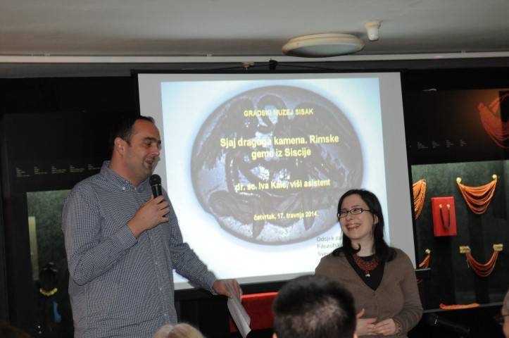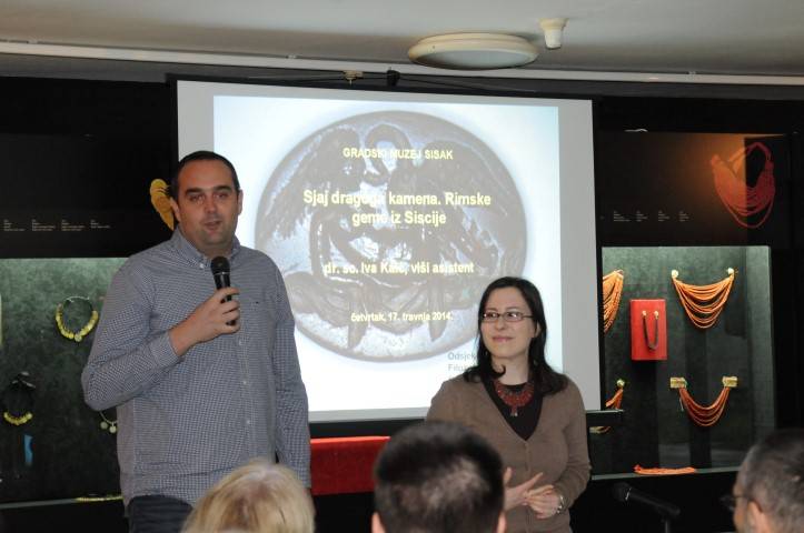 U Gradskom muzeju Sisak, u četvrtak 17. travnja 2014. u 19,00 sati održano je predavanje znanstvene novakinje dr. sc. Ive Kaić s Odsjeka za arheologiju Filozofskog fakulteta u Zagrebu na temu „Sjaj dragoga kamena. Rimske geme iz Siscije“.